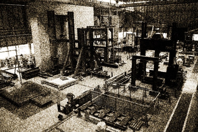最後に、研究棟を拝見。実大の熱環境試験室や各種の試験装置の設置された格納庫のような大型の施設です。実際の実験の様子などを見る事ができると良かったのですが、設置されている様子を見学する事が出来ただけでした。実験棟の中の様子も写真に少し撮ってはいるのですが、撮影禁止のマークもあった事なのでここでは加工写真でご容赦のほど。大和ハウス工業総合技術研究所のサイトにいくらか紹介されているので、そちらをご覧下さい。