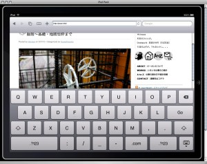 もうじきに日本でも発売となるアップルの iPad でこのブログを見たら、こんな感じになるらしい。ウェッブベースのエミュレーター「iPad Peek」と言うサイトで遊んでみた。なんと言うのか、こうしたサイトをわざわざ作る人がいる訳だから、このアップルの新製品はやはり革命なのだろう。実際楽しそうで、かなり物欲そそられてます。