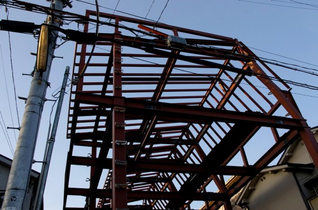 打ち放しコンクリートの低めの手摺壁からおもむろに、スチール手摺のための受けプレートが飛び出ていた。これを見つけて、さらにおぉなんと手の込んだ!と驚嘆した。出来上がってしまえばなんて事なさそうな細部だけど、このようにするに図面から施工からとても気を使う。コンクリートが打ち込まれる時には既にプレートはきっちりセットされていないといけない。打設の時もコンクリートに押されて傾いたらみっともない。