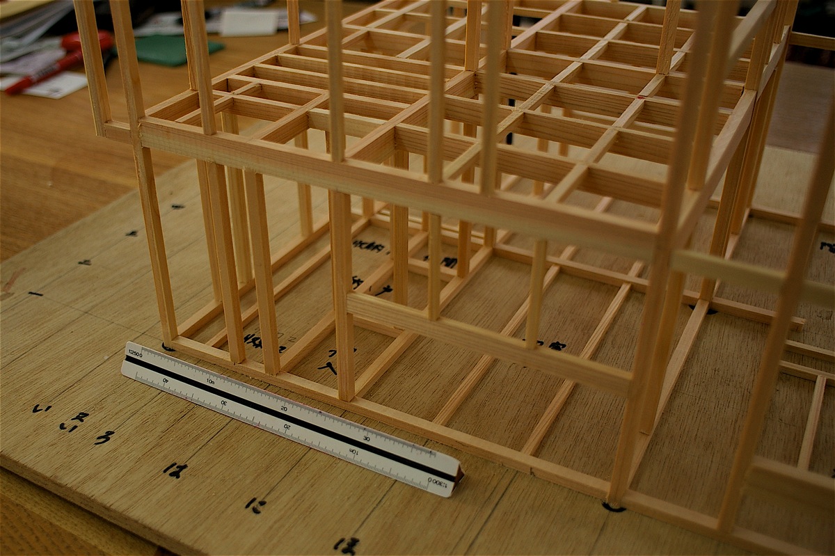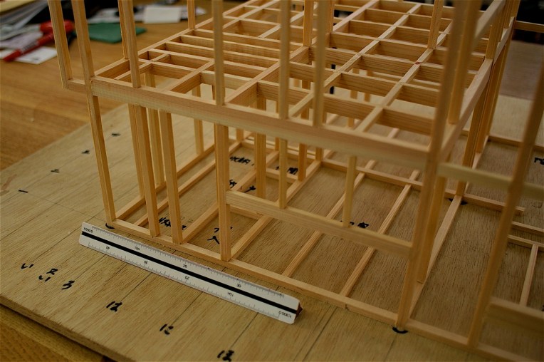 木割書の内容はどちらか言えば寸法体系(モジュール)の構築が主だったようです。 柱や梁、垂木のサイズを一定比率に現すことで、誰がやってもある程度に整った形を作り出せる(もちろんそれなりの技術あっての話でしょうが)。そうした俺んち流を伝えられるように、もしくは忘れないようにするのが一番の目的だったようです。中には観念的哲学的な人もいて、大工とは何ぞやと深みにはまっていくものもあったそう。なににせよ、世界に類を見ないほどに日本には建築書が多いのだそう。平和だけでなく、日本という国はそうした技術を育む土壌が自然にも思想にも羨ましい程にそろっていたのかも知れません。いや平和どころか、乱世を生きる術だったのかもしれません。