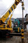 ちらちらと雪が舞った中、工事は進みました。1.5〜1.7Mほどの浅めな改良ですが、約40本ほど設置するのに2日半ほどの工事となります。初めて見る工事についつい現場に長居してしまいました。
