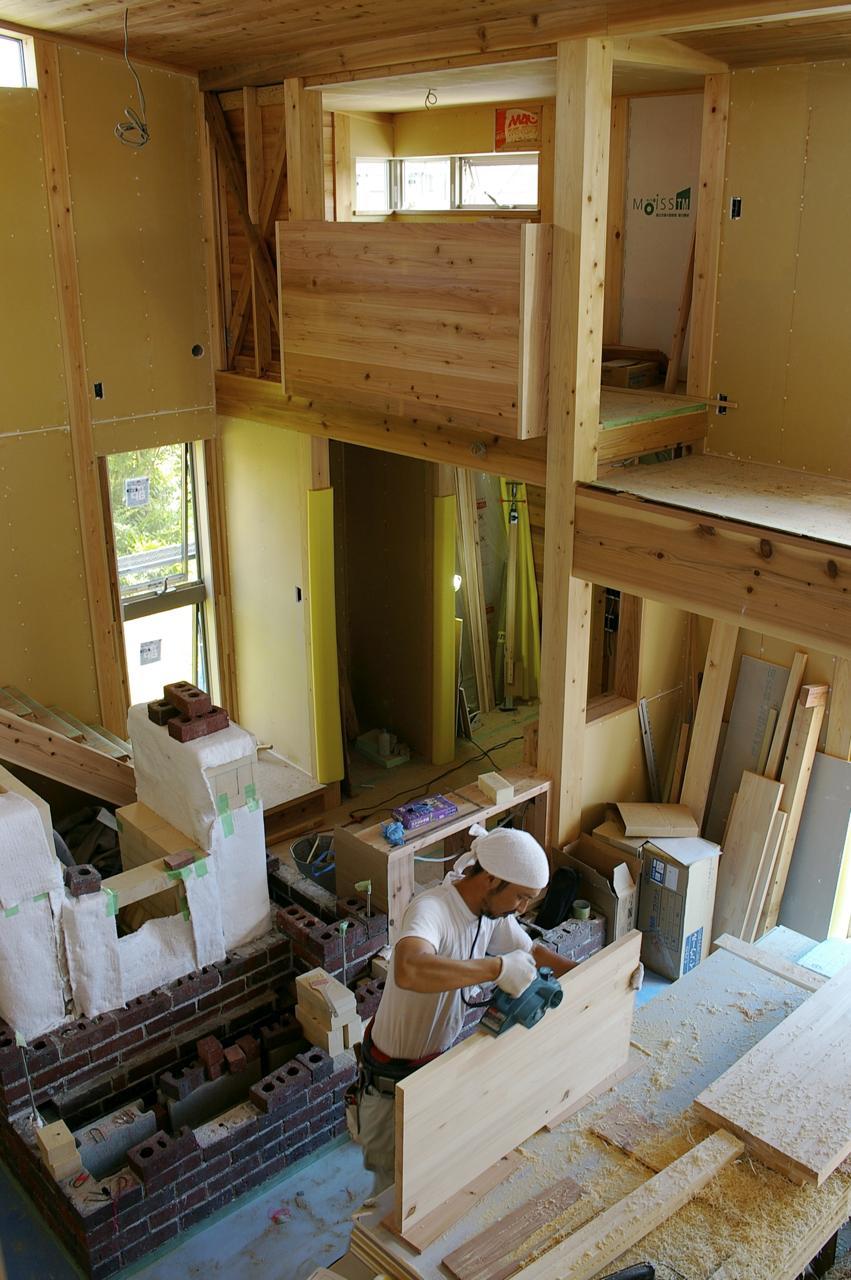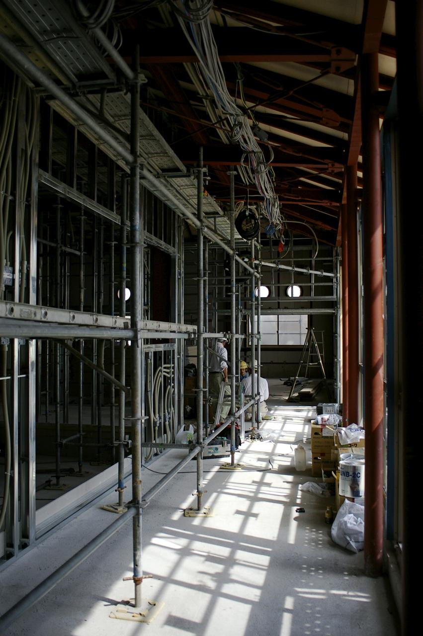 夏の差し掛かりからすっかりブログの更新を怠っています。少々忙しかったのもありますが、どことなく調子に乗れずズルズルと。それでも、なんとか仕事はガムバっております。今はようやく完成に近づいた住宅と、棟上げを済ませ内装工事に取りかかり始めた保育所の現場を進めています。久しぶりに、ほんの少しですが近況を報告です。