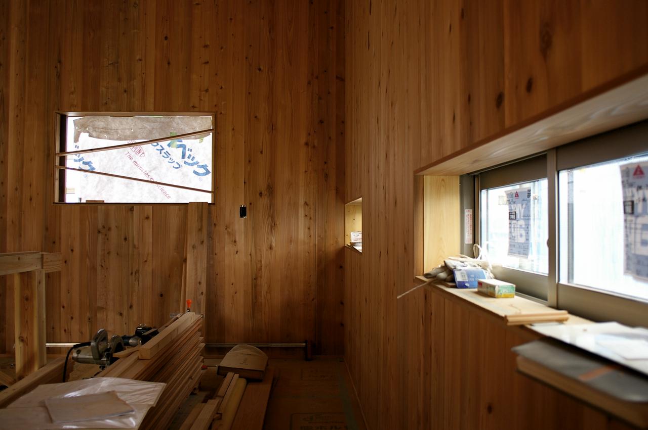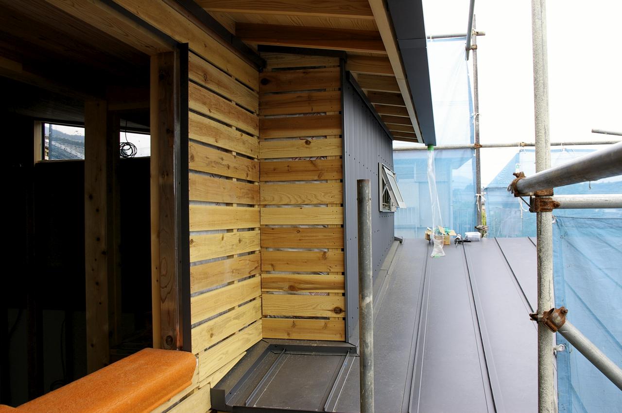 懐かしい駅舎と名付けられたこの住まいは、この地に元あった建主の祖父の家の記憶が漂いながらも、新しい家族のこれからの生活への分岐点となります。いろいろな想いが、木・木造にこだわる宮内建築さんの手によって施工されました。