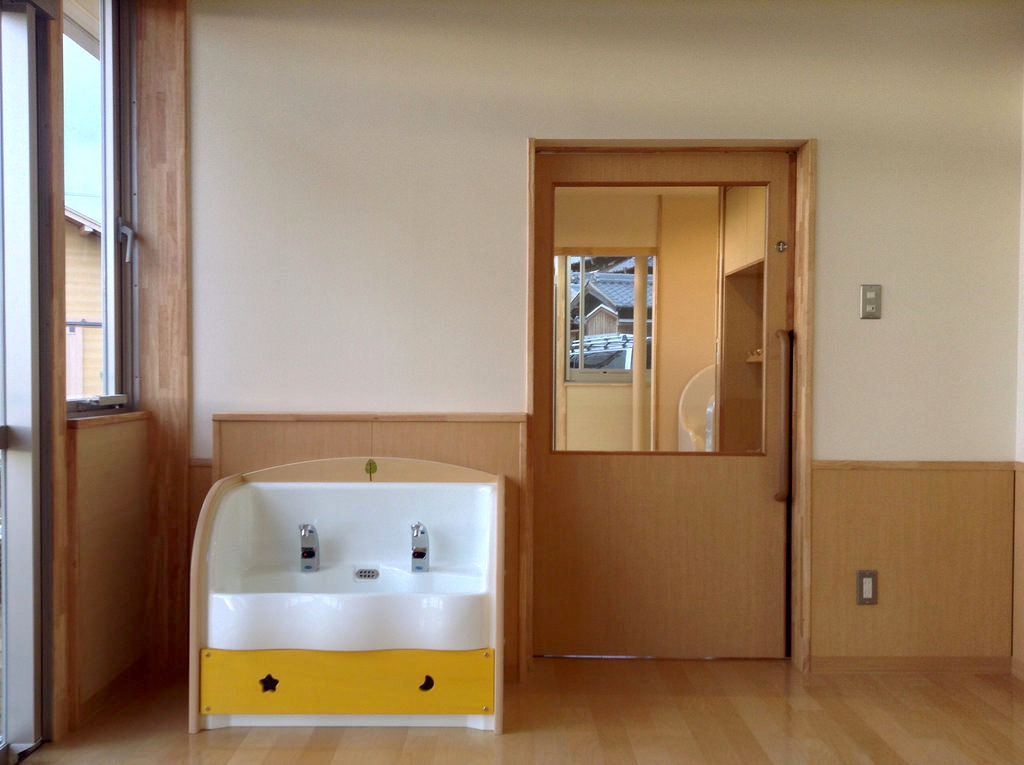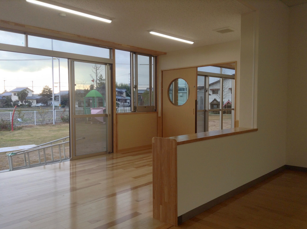 秋口からの工事中、子供たちには既存の遊戯室を分割した仮の保育室などで我慢してもらいました。新年からは、ようやく広くなった保育室で子供たちの生活が始まります。