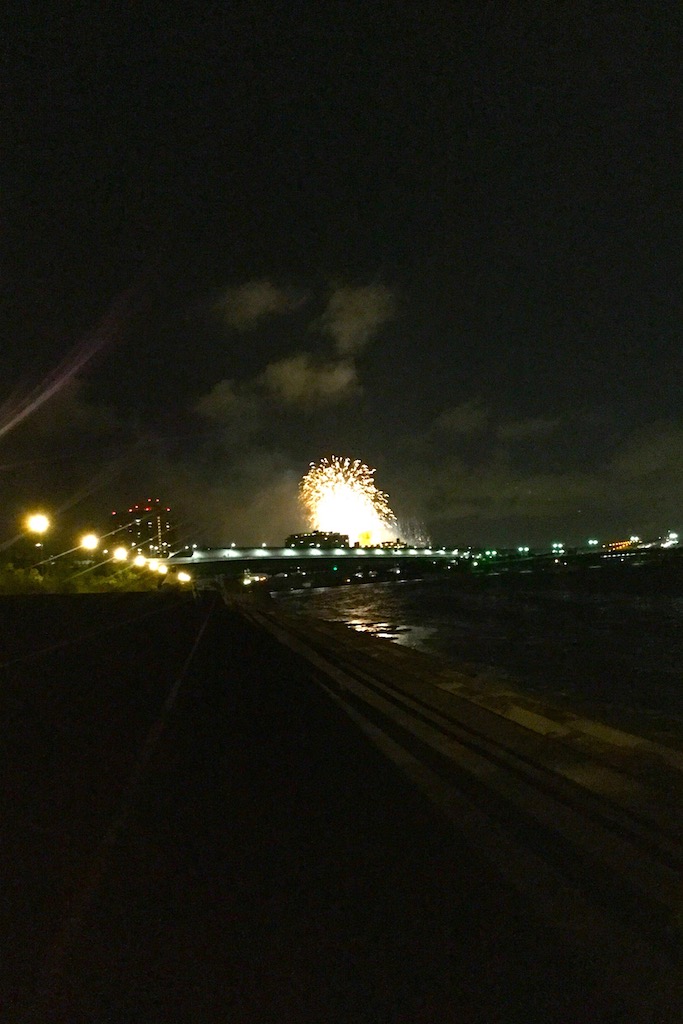 7月おわりは、ヨメさん家族と恒例で、浜の堤防沿いをチャリンコで繰り出し、芦屋の花火を見ながら夕涼みをしました。見応えのあるスポットまでは少しあり、長い堤防沿いを弁当とビールを持って一目散走るのも飽きて来たか、年々近いところで済ませるようになってきました。