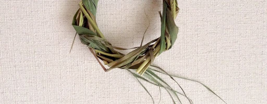 この小さな茅の輪作りが案外と難しい。案外面白い。長さが1.5〜2メートル、太さが太いところだと5〜6ミリある茎を潰しつつ柔らかくしながら、千切れないように丁寧に輪っかにしていく必要があります。それがまず綺麗な円にならない。パキポキと5角形ならまだしも変則3角形になったり。悪戦苦闘し、厳かな空気のなかゴソゴソと茅の輪作りに没頭するのはなんだか罰当たりな気もするのですが、綺麗にまぁるく出来たらまずニンマリ。