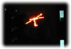 竣工当時から飾られているレインボーマンのフィギュア。と「左大文字」の見える様子。