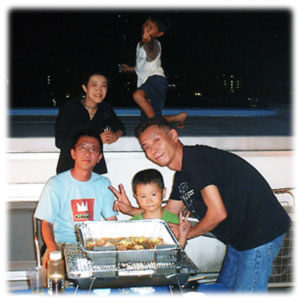 大文字を見る納涼も楽しみですがココに来るもうひとつの楽しみは、いち年ごとに子供たちの成長を拝見出来ること。仲の良い兄妹3人の様子や関わり方が毎年少しづつ変わって行くのを感じながら、この住まいでどんな風に育ってくれるだろうかと、どんな風に使われて行くのか。この「BlueWind21」では、個別の子供部屋はありません。勉強スペースと寝るための部屋があるだけです。成長する過程で文句のひとつを子供たちから、この例会でいつか詰め寄られる日が来るかもしれません。身勝手な設計者からみると、この小さな住宅で楽しくも逞しく育っているような気がしてんなりません。なにより、施主さんご夫妻と子供たちの家族の関係がとても良く見えるからかもしれませんが。