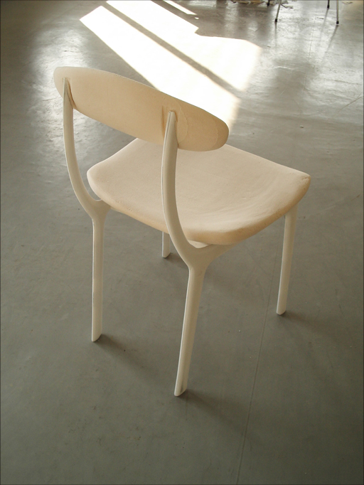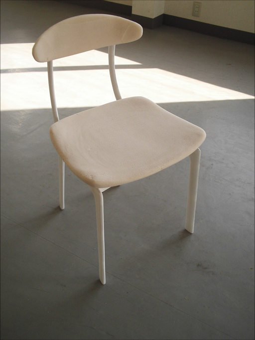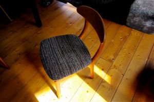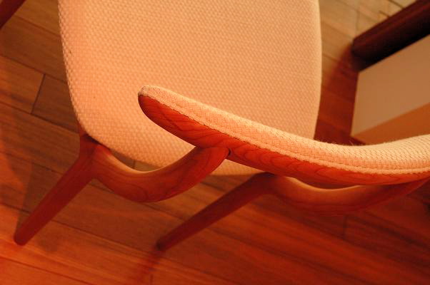 友人の古田君に製作をお願いしていたダイニングテーブルに揃える椅子4脚がほぼ完成に近づき、座面や背中の張り地を確認しに行くのが目的でした。ただデザイナーの古田君本人は只今中国、近い内に帰国と聞いていますが、施主さんと共にデザイナーの最後の意向は聞かぬまま決定してしまった感じです。古田君、申し訳ない(笑)。