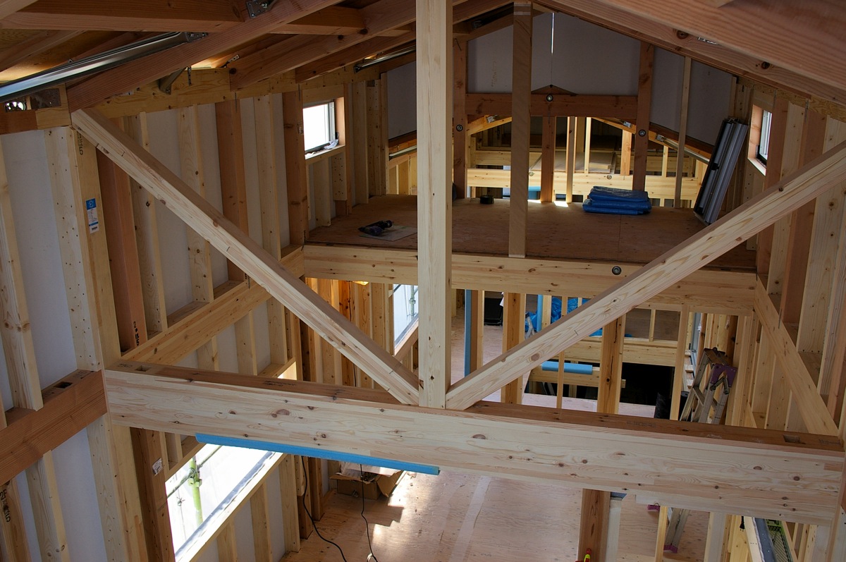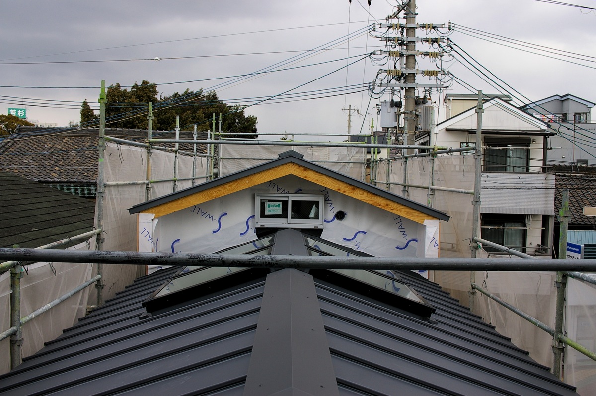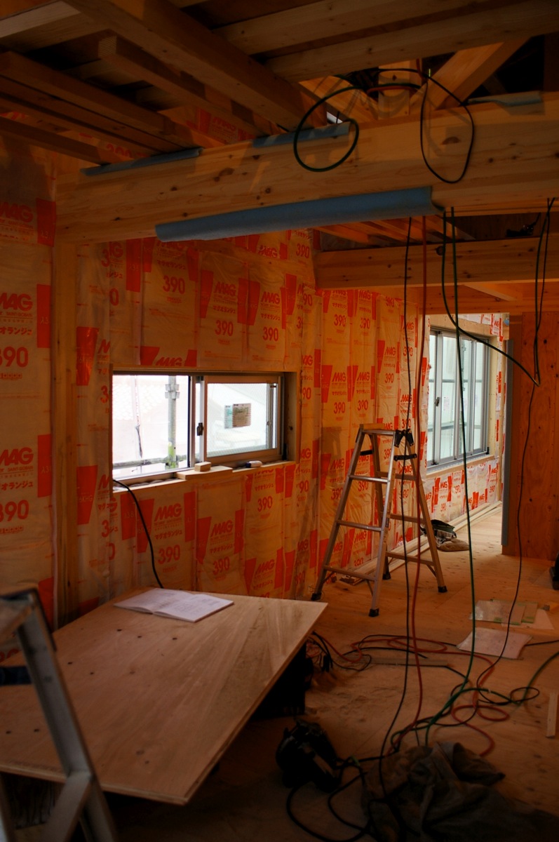 去年内からスタートしていた大阪の街中の小さな家です。もうすでに設備の配線やら配管やらが走り始め、もうあと少しで内装に取りかかる手前まで来ています。外壁側も板金を張る手前にさしかかっています。