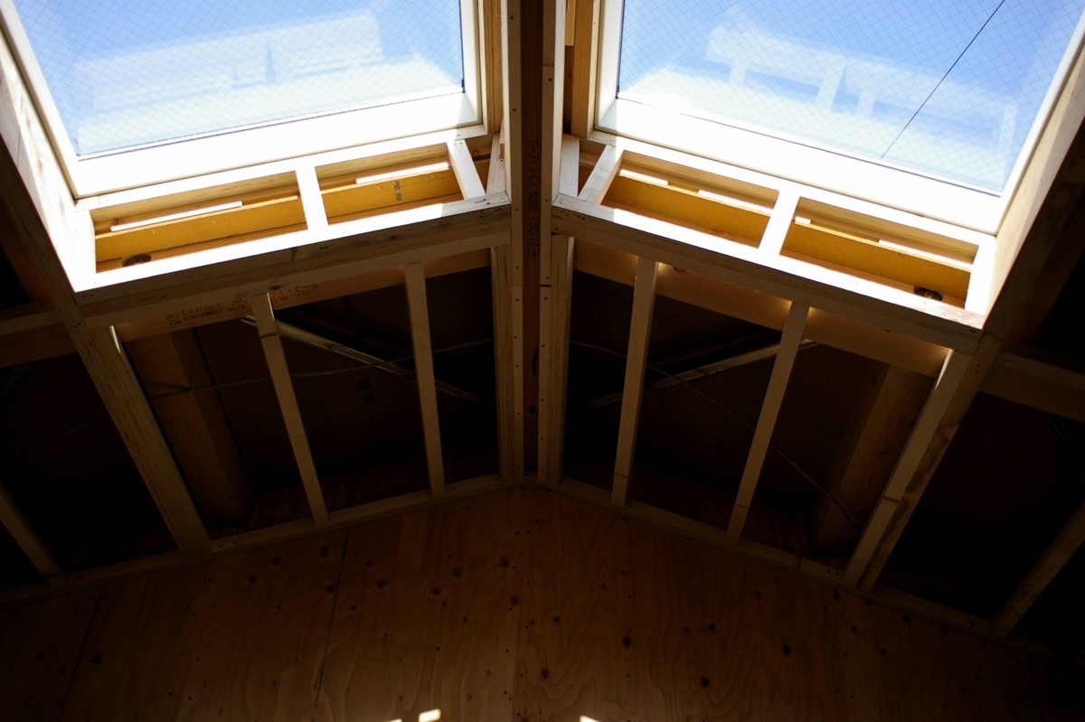 敷地の小ささに心配をされていた施主さんも形が見え始め、安心してもらえている様子。家の中心には大きな天窓のサンルームがあり、ここは中にいても外にいるような気持ちよさがあります。
