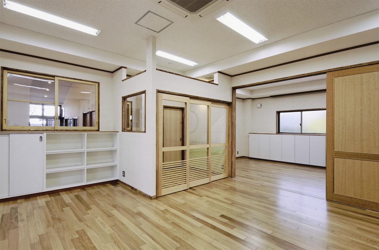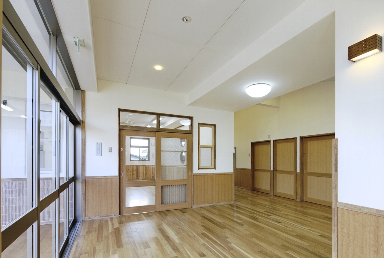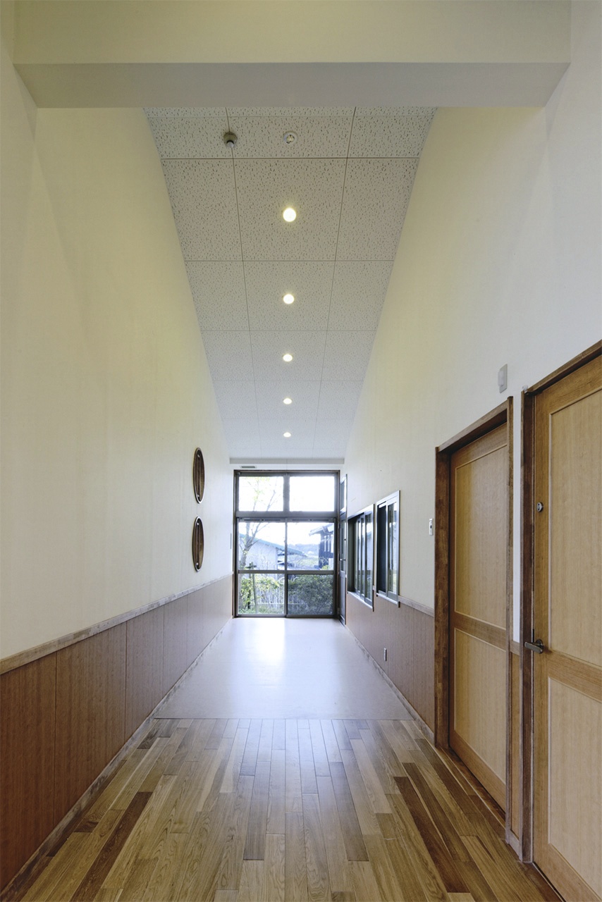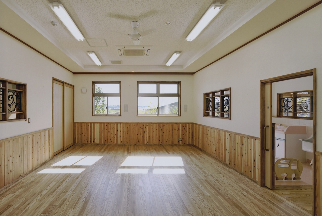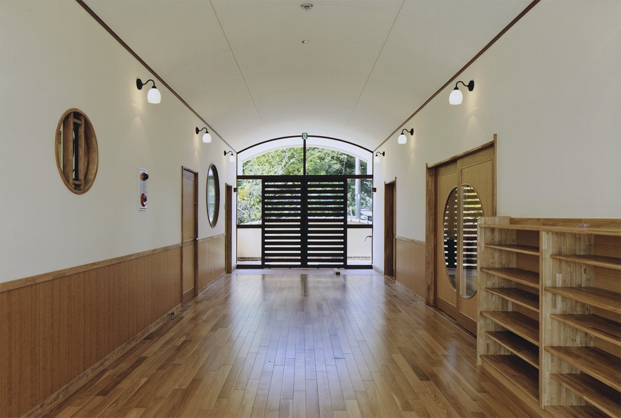 【 敷地概要 】 ・場所 :兵庫県加東市 ・敷地面積 :2855 ㎡ ・用途地域 :市街化調整区域 用途地域指定なし 建蔽率60%・容積率200% ・前面道路幅員:(西)4.07 m 【 工事概要 】 ・工事種別 :増築(旧園舎一部撤去) ・建築面積 :743 ㎡(全体1036 ㎡) ・延べ床面積:699 ㎡(全体964 ㎡) ・構造/規模:鉄骨造 地上1階 ・最高の高さ:7.81 m ・構造仕様 :鉄骨造 ・基礎仕様 :鉄筋コンクリート造布基礎 【 主な仕上 】 ・屋根 :洋瓦葺き ・外壁 :ALC アクリル塗装 ・内装 :床/厚単板複合フローリング 壁/PB下地ビニールクロス、腰壁杉羽目板 天井/岩綿吸音板 【 設計/施工 】 ・設計 :庄司洋建築設計事務所(担当:庄司洋) ・施工 :前川建設株式会社(担当:久後秀樹・凪光徳) Photo:絹巻豊
