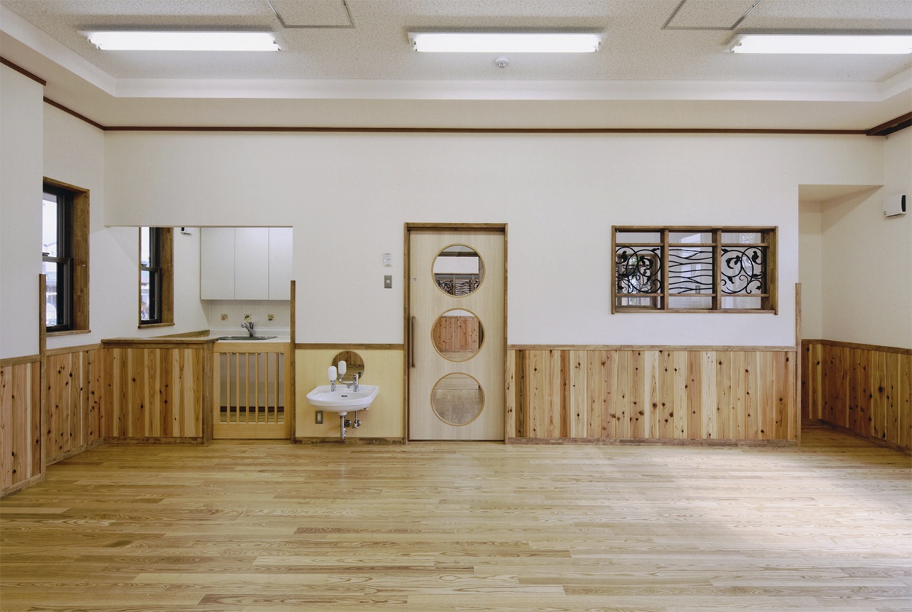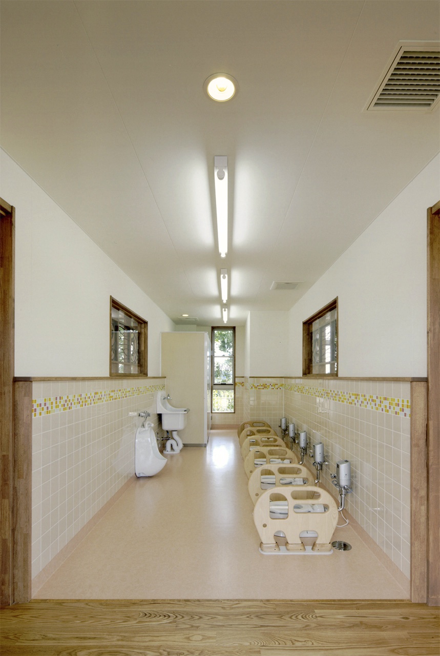 計画当初、幼児保育や幼児教育の書籍などを読みながら、はじめて携わる保育園設計をどのようにまとめて行くのが良いか悩みました。楽しさ一杯の保育園、色とりどりな保育園、走り回れる保育園。何かが必要なのでは?と模索を続けつつ、子供たちの生活を一番に考える理事長先生や園長先生と打合せを重ねるうちいつしか「子供たちが自分の家のよう、ごく自然に時を過ごせる居場所」と言うイメージが湧いてきました。奇をてらうではなく、ごく当たり前に、住まいの設計と変わらず進めることが一番だと考えはじめました。