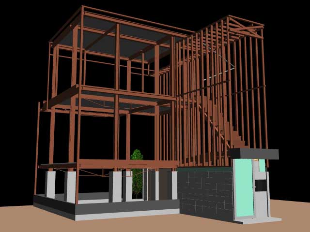 【 工事概要 】 ・工事種別/新築(スタジオ併用住宅) ・建築面積/38.42(建蔽率56.14%・許容60%) ・延床面積/102.39(容積率149.62%・許容200%) ・構造規模/鉄骨造一部RC造・地上3階