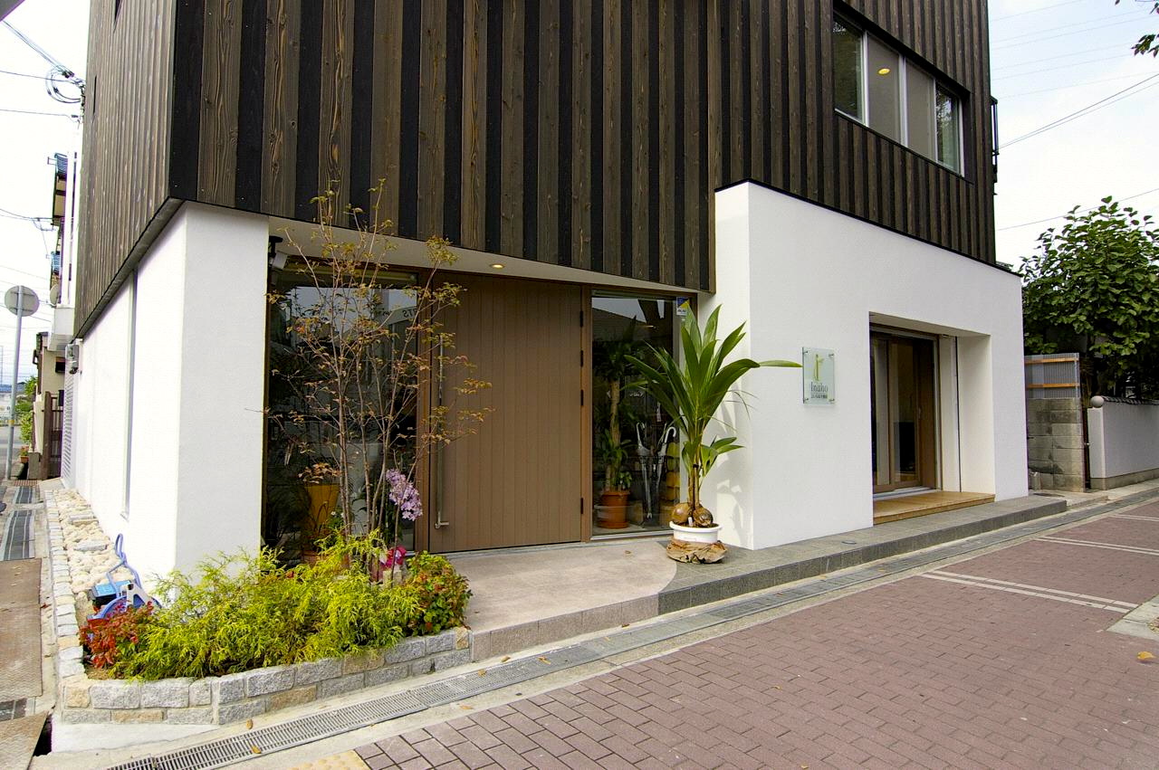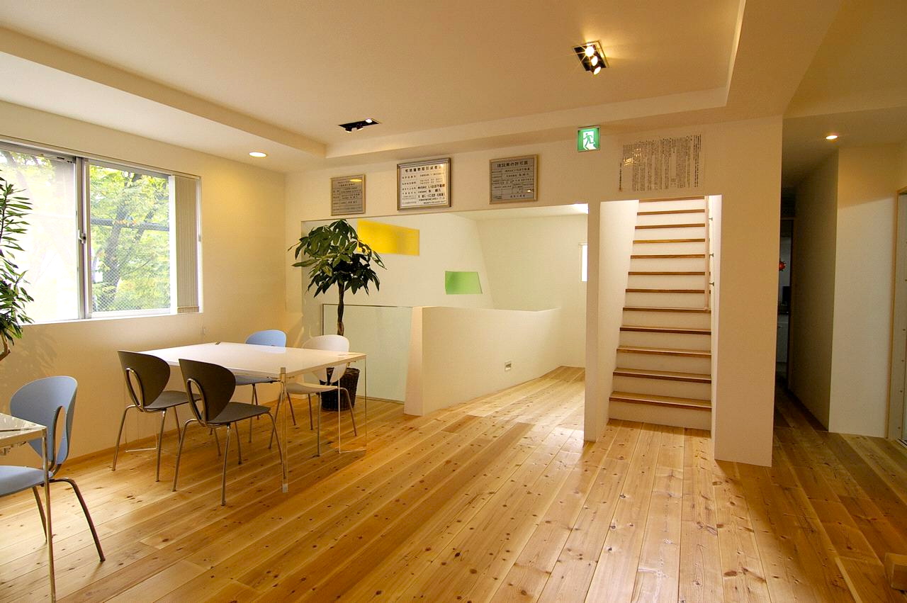建築概要 【 敷地概要 】 ・場所 :兵庫県尼崎市 ・敷地面積:174.14 ㎡ ・用途地域:市街化区域 第一種中高層住居地域 建蔽率70%(角地)・容積率200% 準防火地域 ・前面道路幅員:(東)12.0 m 【 工事概要 】 ・工事種別 :改修(店舗・事務所) ・建築面積 :120.84 ㎡ ・延べ床面積:295.77 ㎡(自動車車庫の部分除く) ・構造/規模:鉄骨造 地上3階 ・最高の高さ:9.66 m 【 主な仕上 】 ・屋根:アスファルト防水(既存) ・外壁:ALCの上、杉板保護着色剤塗布 ・内装:床 / パインフローリング 壁 / しっくいペイント・ビニールクロス 天井/ しっくいペイント・ビニールクロス 【 設計/施工 】 ・事業主:(株)いなほ不動産 ・プロデュース:スタジオアレックス 高川雄宏・宮内美和 [studio are:x] ・設計:庄司洋建築設計事務所(担当:庄司洋・橋口達也) ・施工:いなほ不動産