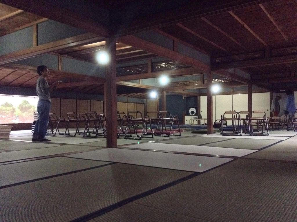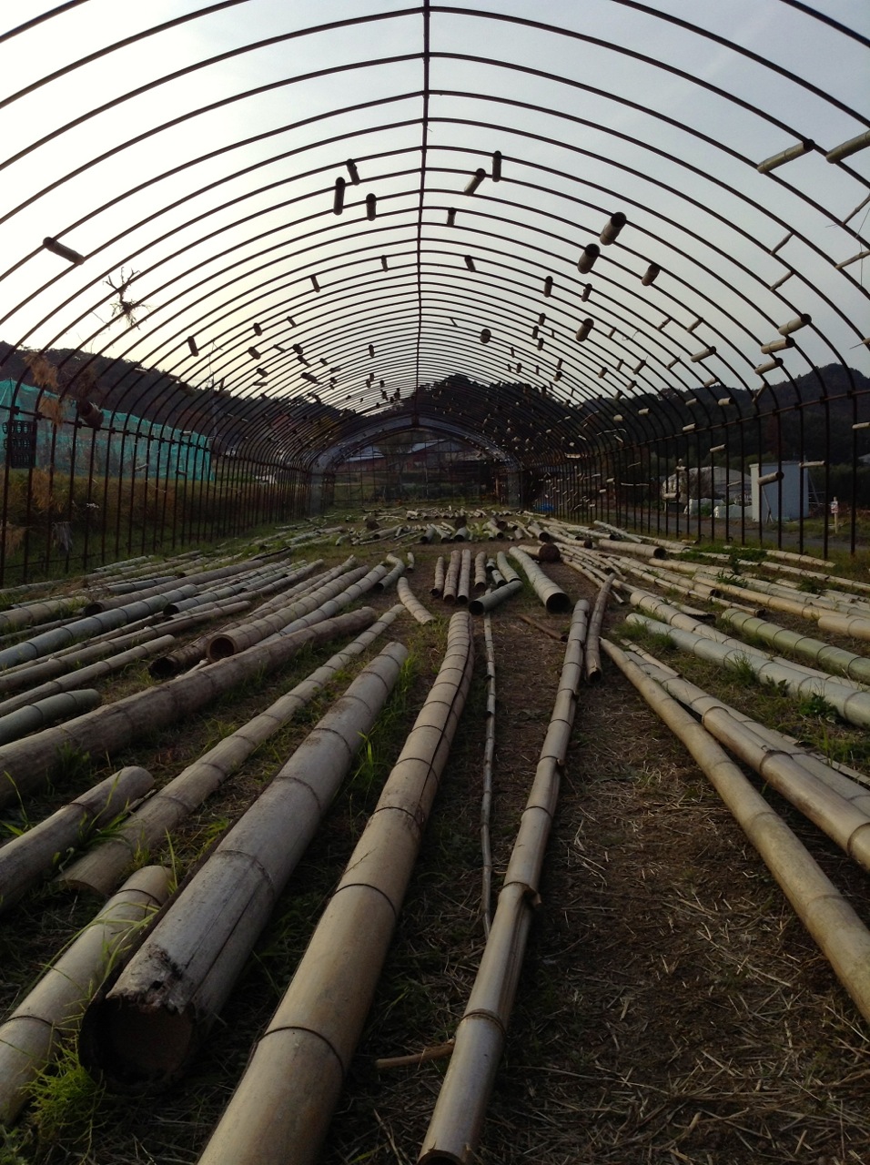 会場のひとつには丸太が立ち並んでいる部屋があるんですが、丸太の材料にイーノは(確か)白樺を要望していたのが、展覧会のプロデューサーは京都での開催なのでお願いして北山杉に替えてもらったそうなんですよ〜。