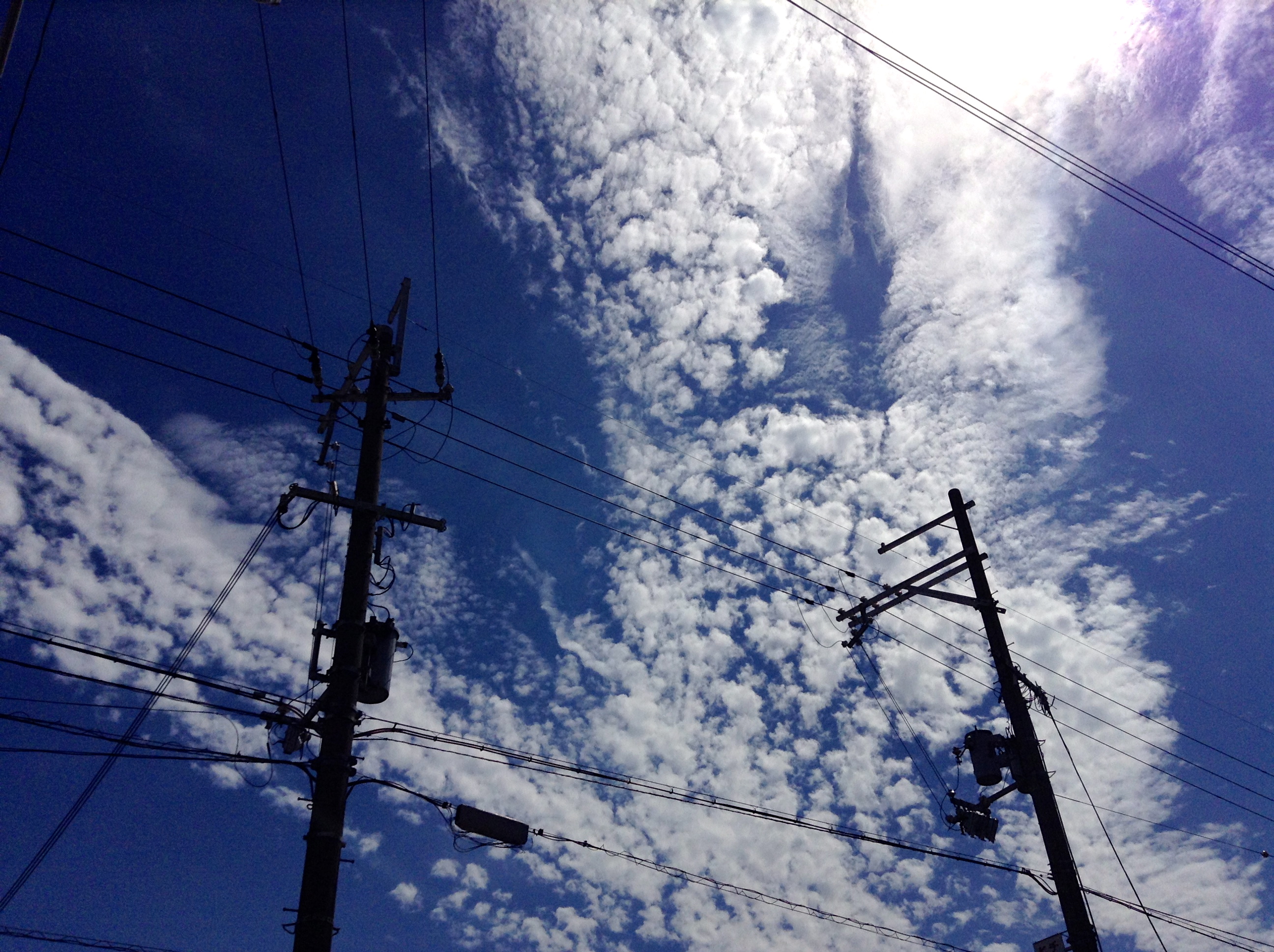今日は現場に向かう道すがら空が随分晴れ渡っていました。台風が近づいていると言っていたはずの朝の天気予報はどうなったんか?と思っていたら、どうも逸れていったようですね。お天気続きは工事現場には嬉しいけど、梅雨というのにこれだけ雨が降らないのでは、農家の方々は気が気でないでしょう。浮かれて写真など撮っているコトお許しください。