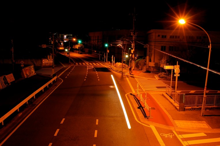 家と事務所の通い道のひとつ、小中学校前の少し幅広い歩道がこの2〜3日の間で自転車通路のカラー舗装がされました。そんな工事があると知らず、帰り道初めて見た時には既に白いラインが街路灯に照らされ延々と入っていました。次の日には山吹色の路面になっていました。急な風景の変化に、え?なに?コレって感じです。