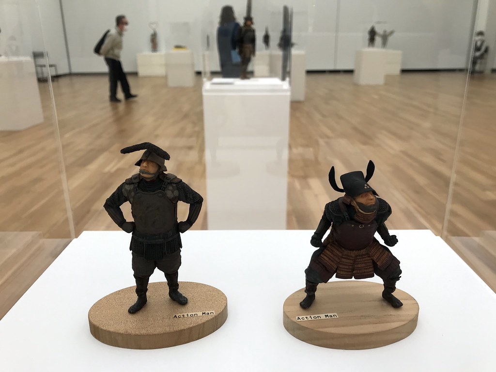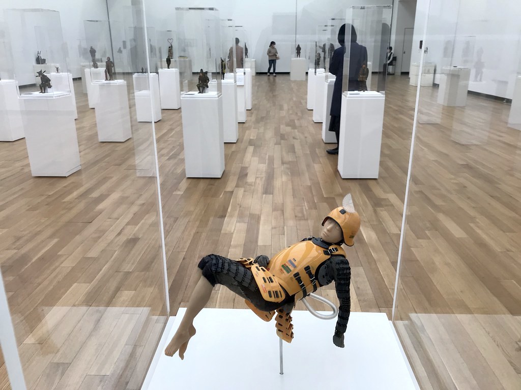 甲冑姿の人形?は、写真の通り一人一人なんとも言えない表情。どこか冴えない様でいて、どこか夢心地な不思議な眼差し。表情も立ち振る舞いもどこまでもリアルで、どこにでもいそう。なのに、どこにもいないだろうと思えるギャップが心地よい感じです。