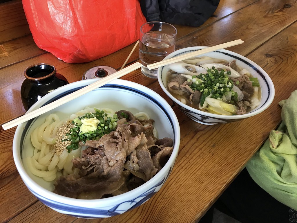 うどん屋に着いてみると暖簾が掛かっていない。やってるのかな〜?と戸を開けてみると、お客さんはそこそこいらっしゃる。早速肉うどんを注文して食してみれば、うどんもお肉も満足感大。
